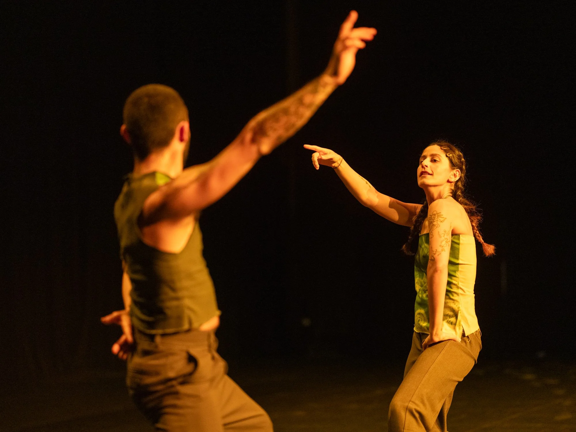 the intimacy of collision engages with Orientalist aesthetics of representation. Focusing on form and rhythm, the work deconstructs “Middle Eastern” folk dances bringing them into conversation with contemporary movement vocabularies. In doing so, the piece shapes a dancing body that unsettles and disrupts orientalist imaginaries. Three performers draw from the rhythmic structures of Dabke and the cyclical loops of Baladi, creating a dance that oscillates between anger and celebration.